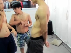 Asian twinks sucking dicks before barebacking in threeway