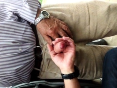 Gray DILF blows and wanks erected gloryhole dick in POV